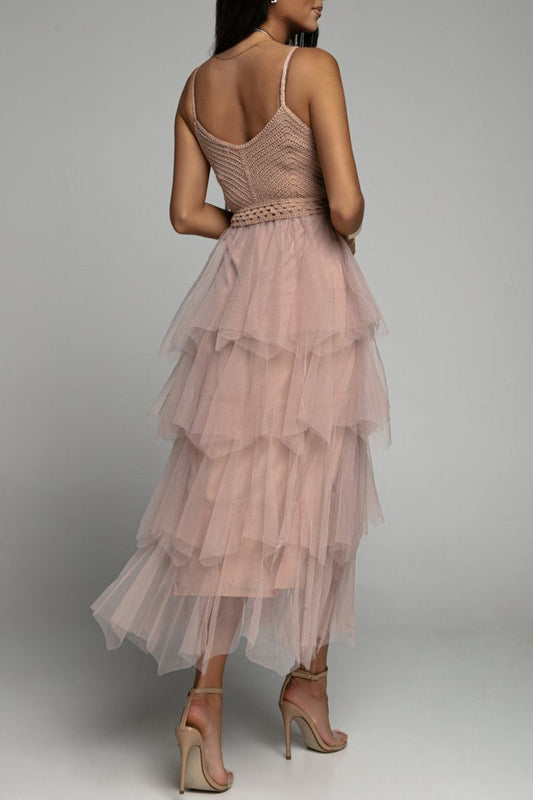 Celebridades elegantes acessórios de metal sólido decoração decote em V vestidos de saia de uma etapa