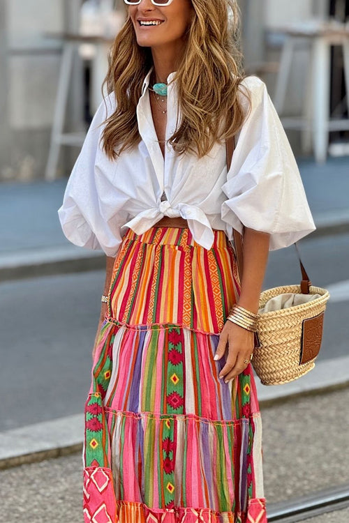 Rosiedress Vestido midi estampado com mangas lanterna e laço nas costas