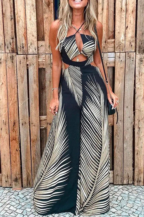 Rosiedress Halter Backless Impresso Swing Maxi Vestido de Férias