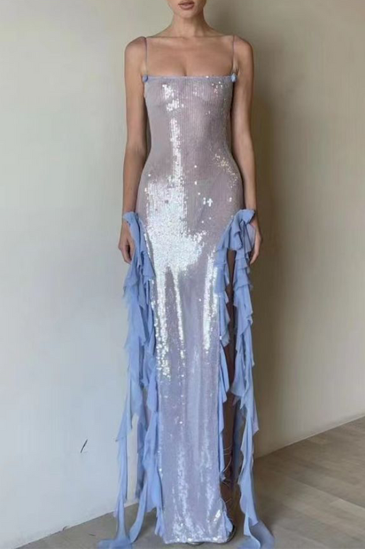 Vestidos de noite sexy com lantejoulas sólidas e fenda nos ombros (3 cores)