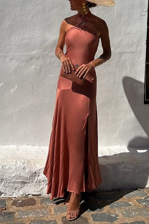 Vestido Midi Cami chique com um ombro e fenda na cintura