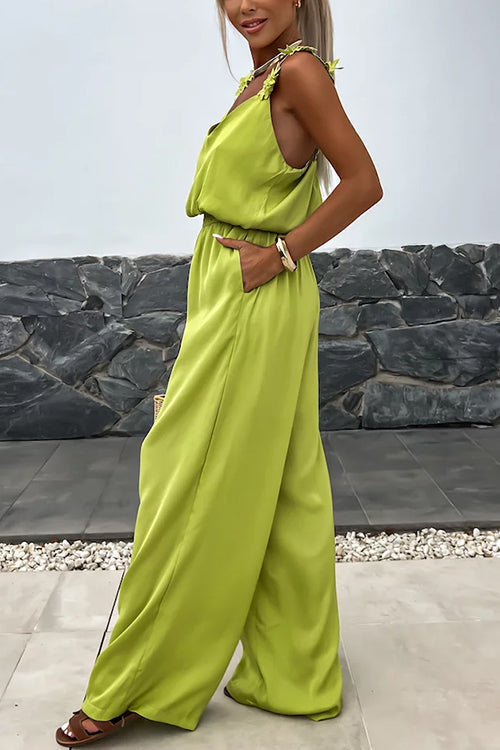 Casual sólido Frenulum Spaghetti Strap Macacões retos